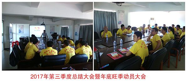 本次會議由營銷總監(jiān)黃金旺主持,會議在陳飛鵬董事長及陳進(jìn)鵬副董事長致辭講話