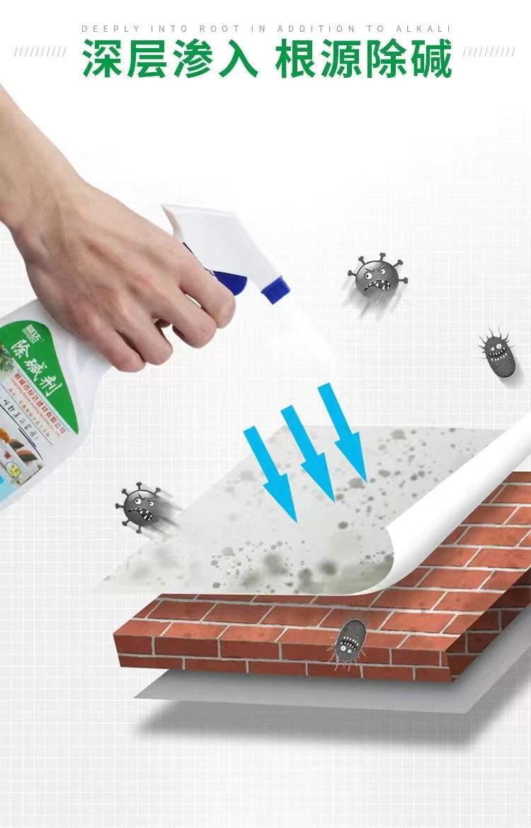 泛堿清洗劑(也稱去堿劑,除堿劑)是針對(duì)瓷磚及石材表面各種泛白的特點(diǎn)研制而成的,可分別清洗瓷磚、清水磚、陶土制品、天然石材和混凝土制品表面的自然泛白物和因不科學(xué)清洗后形成的泛白物。