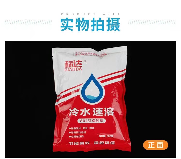 使用說(shuō)明:在一定量的水中邊攪拌邊加入規(guī)定量的膠水粉,攪拌1~5分鐘膠粉全部溶解,靜置15分鐘即可使用。例如:在40kg-50kg的水中攪拌下加入1kg速溶型膠粉,攪拌1~5分鐘,靜置15分鐘即可。